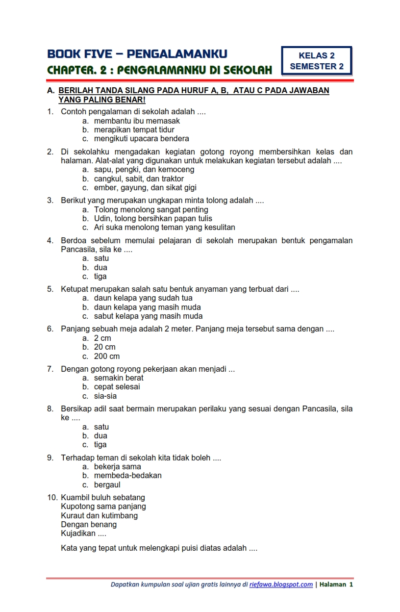 Pada postingan kali ini admin akan membagikan beberapa contoh soal dan kunci jawabanya untuk evaluasi tengah semester ganjil. Buatlah 20 soal pilihan ganda beserta jawabannya prakarya. Demikian tadi beberapa contoh soal ulangan semester 1 untuk jenjang smp/mts yang bisa kami berikan semoga bermanfaat. Dalam menghadapi ulangan tengah semester (uts) maka pastinya guru dan siswa mulai sibuk bersiap diri menghadapi penilaian tengah semester tersebut. Soal uas pkn kelas 10 semester 1.